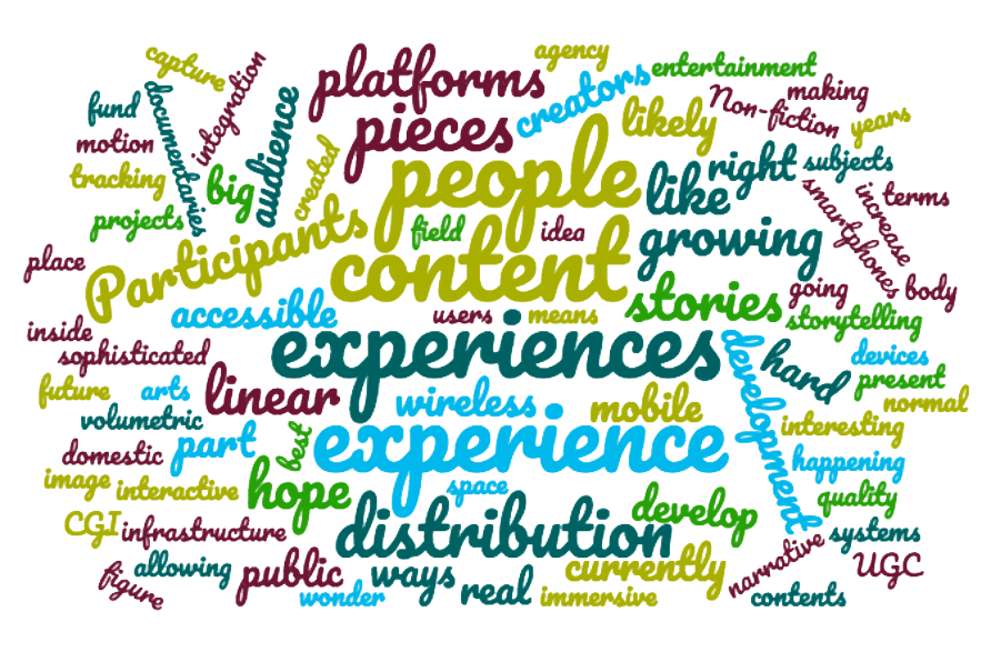 In Jan/Feb 2018 we conducted an opinion survey with 30 leading producers, curators and directors of VR non-fiction (VRNF) to identify key priorities for our audience studies (planned for Spring/Summer 2018). We asked eight open-ended questions about aspects of past, present and future audiences for VRNF.