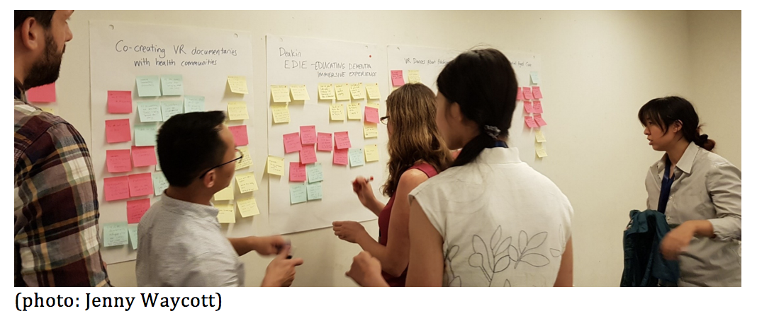 There were several others presenting thought-provoking work at the workshop: Romina Carrasco (University of Melbourne) [paper: The Technology Explorers in the Highway of Life]; Thuong Huang (Deakin Univeristy) [paper: EDIE: An Education Dementia Immersive Experience using Virtual Reality]; Eugenia Kim (City University of Hong Kong) [paper: Virtual Reality Dances About Adolescent Bipolar Disorder: Accommodating Patient and Audience Concerns] and Jenny Waycott (University of Melbourne) [paper: Active VR in Residential Aged Care: Opportunities and Challenges].