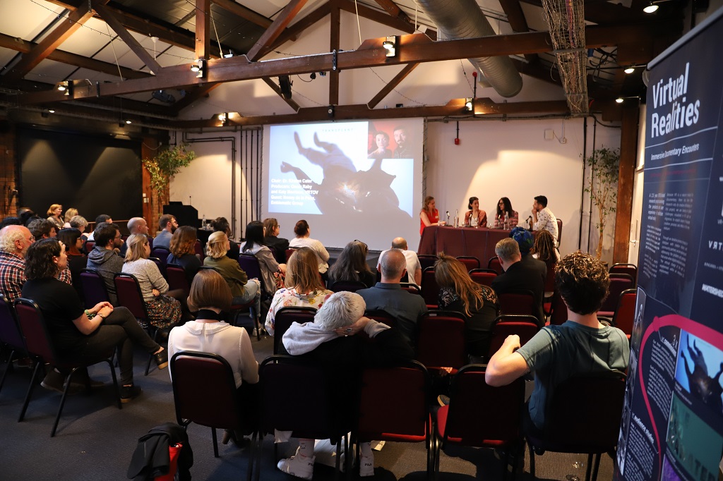 Showcased on the day were 'The Waiting Room: VR' (Victoria Mapplebeck), 'Love and Seawater' (Lisa Harewood and Ewan Cass-Kavanagh) and 'Transplant' (VRTOV’s Oscar Raby and Katy Morrison). Alongside live previews, guests were presented with imagery and materials developed during their production. Later in the evening, three panel discussions were held where our guest were given the opportunity to interact with the artists, the producers and the research team.